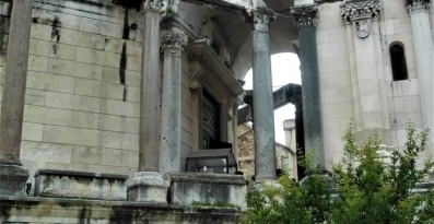 Wędrując po pałacu-mieście zwracam uwagę na wyślizgany biały marmur, który dawniej był podłogą natomiast teraz jest chodnikiem. Pałacowe korytarze zamieniły się w wąskie uliczki – ściany domów są na wyciągnięcie rozłożonych rąk. W komnatach wybudowano domy, do istniejących murów dostawiono brakujące, dobudowano drzwi, doczepiono balkony. Nad głowami przechodniów wisi pranie. Z podłogi oszklonego, nowoczesnego banku sterczy piękna kolumna, w ścianie kawiarni tkwi kamienny łuk… Starożytność miesza się ze współczesnością w przedziwny sposób.