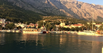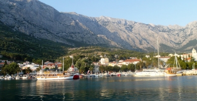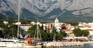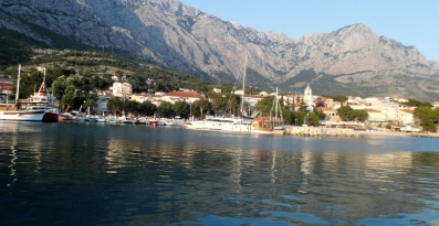Statki zacumowane przy porcie, krystalicznie błękitne morze, okalające bezkresne plaże żwirowe i piaszczyste, a to wszystko u u stóp przepięknych gór Biokovo.