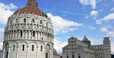 Na rozległym trawniku Piazza del Duomo znajduje się słynny na całym świecie zespół zabytkowy, składający się z czterech arcydzieł architektury średniowiecznej: katedry, baptysterium, kampanili (zwanej „Krzywą Wieżą”) oraz cmentarza, które wywarły znaczny wpływ na sztukę monumentalną we Włoszech.