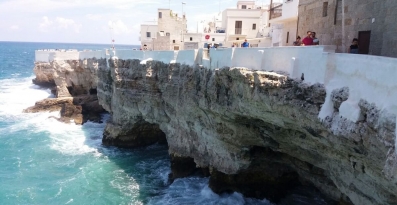 W Polignano znajduje się kilka tarasów widokowych, a każdy z nich odsłania nowe, jeszcze ładniejsze widoki. Nagie białe skały, które szlifują fale Adriatyku to naprawdę niesamowity widok!