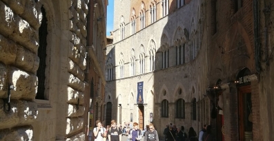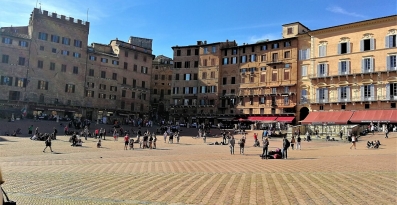 Siena ma coś, co na mapie Włoch ją wyróżnia. To Piazza del Campo, czyli niezwykły, ceglany plac w kształcie muszli, którego posadzka opada w dół w stronę budynku Palazzo Publico, w którym znajdują się władze miasta. Na żywo Rynek Sieny wygląda rzeczywiście bardzo efektownie!