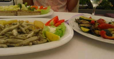 Warto zapuścić się w jakąś boczną uliczkę, by spróbować tutejszych specjalności, wśród których polecam szczególnie małe smażone rybki (frigani gavuni).